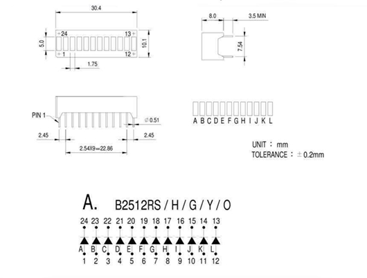 1.75mm X 5.0mm LIGHT BAR 12 SEGMENT