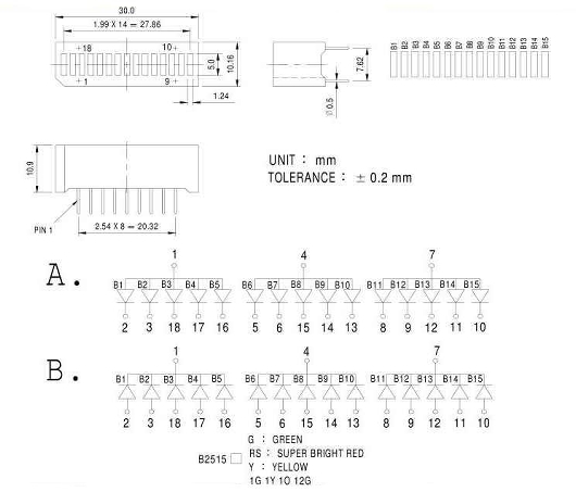 1.24 mm X 5mm LIGHT BAR 15 SEGMENT