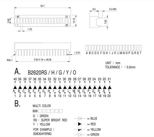 1.78mm X 5.08mm LIGHT BAR 20 SEGMENT