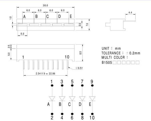 5.0mm X 1.0mm LIGHT BAR 5 SEGMENT