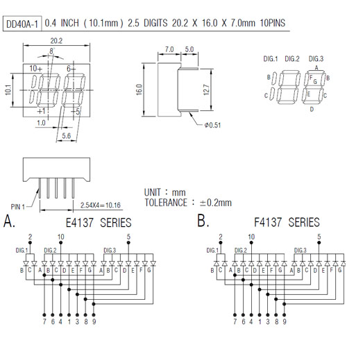 0.4 INCH, 2.5 DIGIT 10 PINS