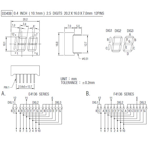 DD40B: 0.4 INCH, 2.5 DIGIT 12 PINS