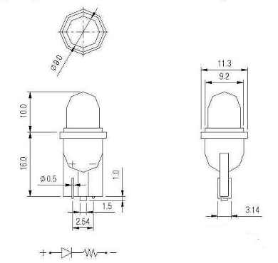 DlA 8.0mm WEDGE TYPE LED INDICATOR