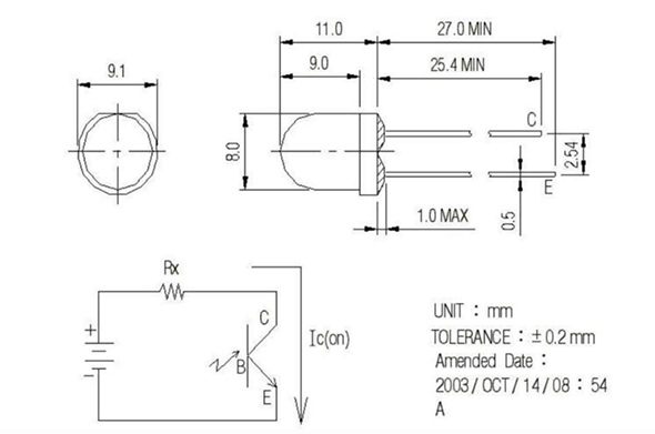 DIA 8mm PHOTOTRANSISTOR