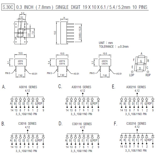 0.3" SINGLE DIGIT (10 PINS)